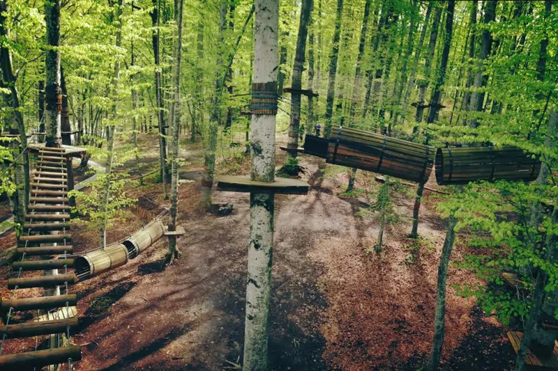Az extrémebb élmények kedvelőinek nincs más dolguk, mint kilépni a Golden Wood házak egyikéből és 2 percet sétálni a Tivoli, avagy az Ifjúsági tó partjáig. Ott található ugyanis a kalandpark, amely két gyerekeknek és két felnőtteknek szánt pályával várja vendégeit.